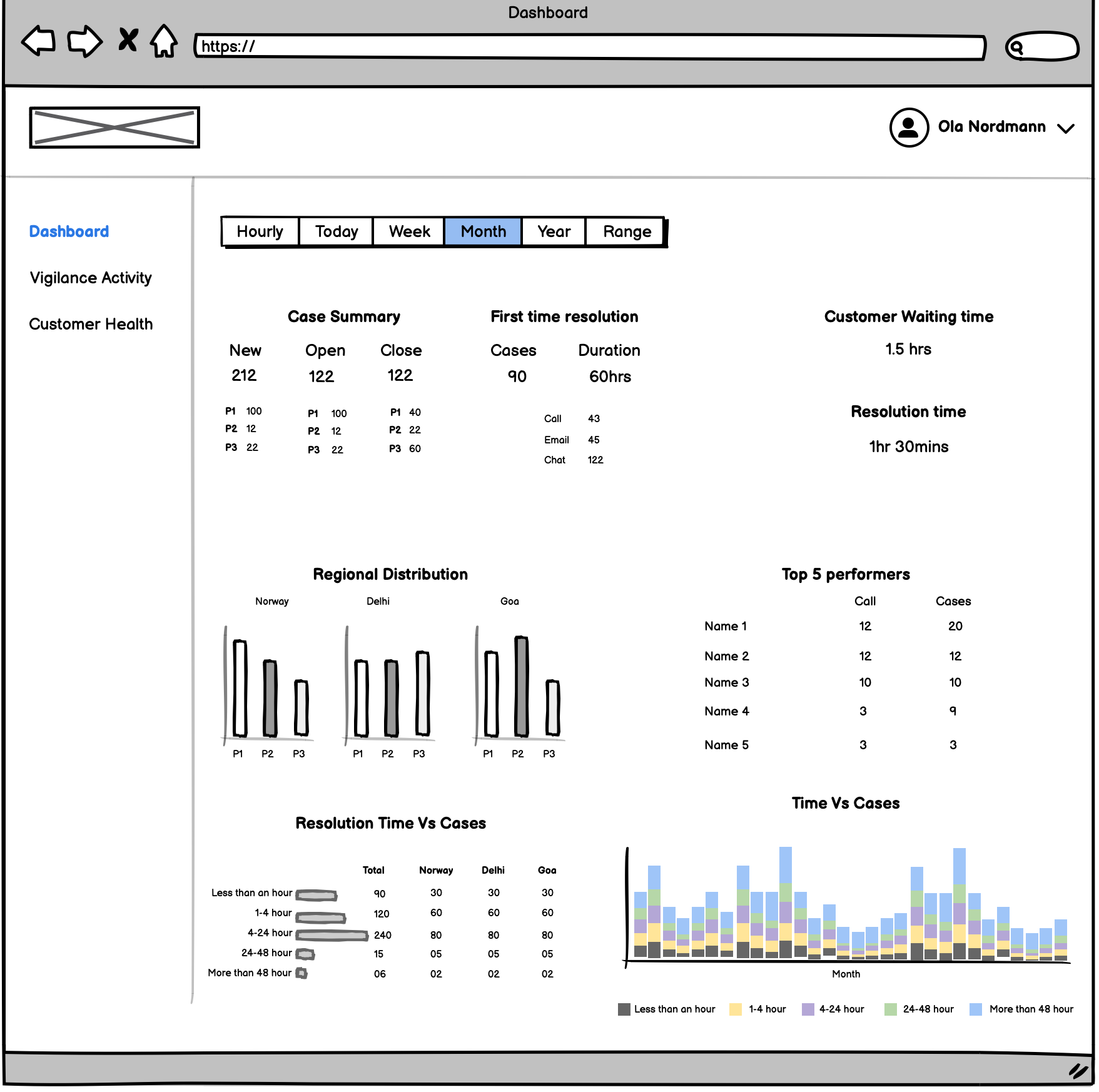- The dashboard needs a comprehensive view based on the diagnostic and vigilance activities to be performed by support team